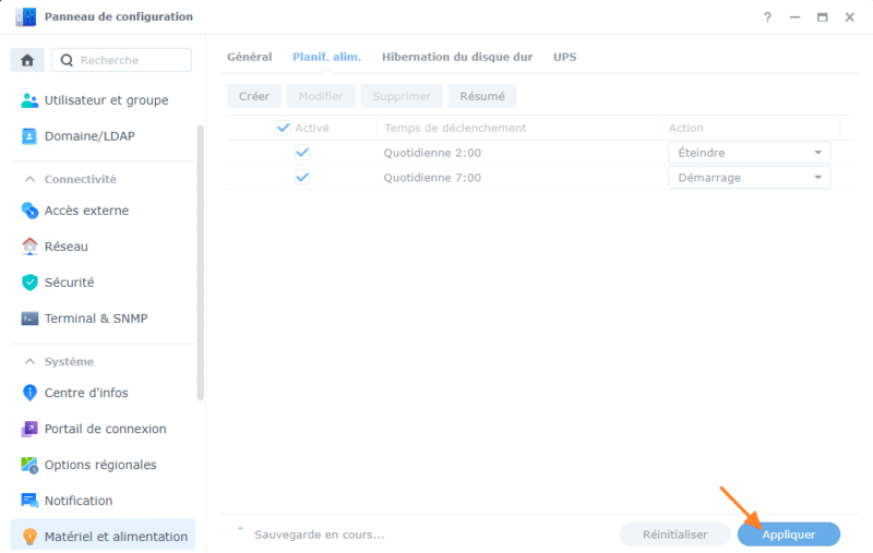 Voilà, votre NAS va s'éteindre et s'allumer tout seul comme un grand selon le planning que vous venez de définir !