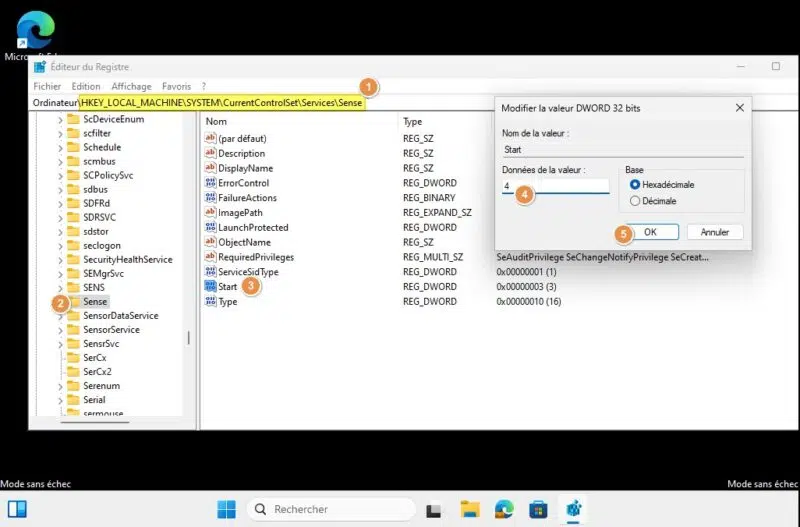 La machine peut mettre plusieurs minutes à redémarrer. Quand c'est fait, connectez-vous et vous aurez accès à votre session en mode sans échec. Ouvrez le Registre Windows, afin de changer l'état de plusieurs services. Parcourez l'arborescence du Registre comme ceci :