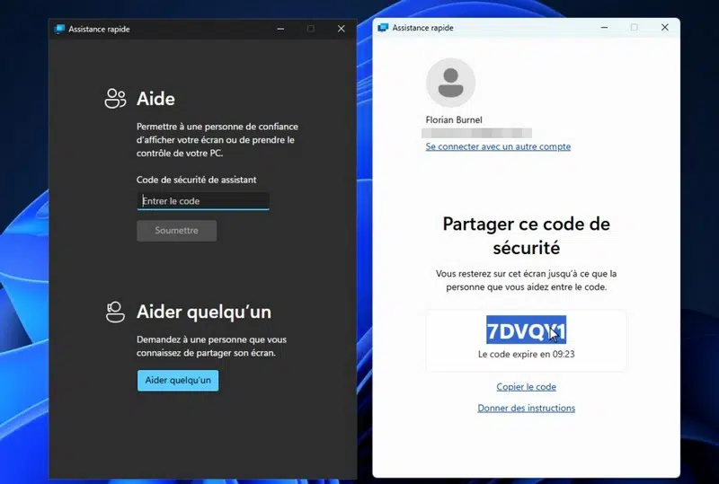 L'Assistance Rapide est facile à utiliser, avec une connexion simplifiée via un code d’assistance temporaire. Il est possible de partager uniquement l'écran ou d'aller plus loin en donnant le contrôle. Il y a également une intégration avec les services cloud Microsoft pour la connexion à l'application.