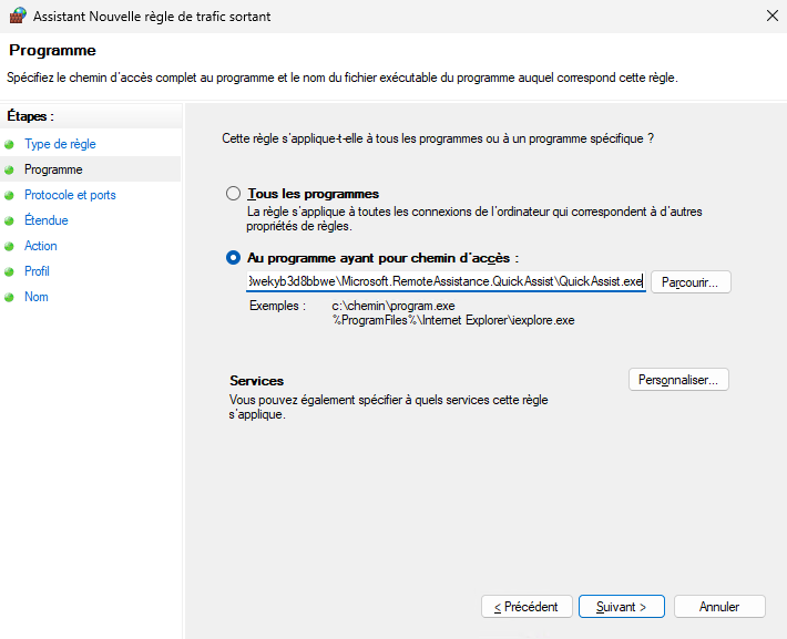 - Configurer le pare-feu de Windows Defender pour empêcher les accès réseau à l'application Assistance Rapide (en ciblant l'exécutable)