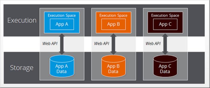L'ouverture de chaque application en mode sandbox implique que les données soient stockées par application (cookie, données, indexedDB...), et qu'une application ne peut pas ouvrir une autre application. L'avantage c'est que ce mode de fonctionne évite les attaques inter-apps, de la stabilité et que les données soient privées. A l'inverse, cela nécessite de dupliquer certaines données et de se reconnecter sur un même service plusieurs fois.