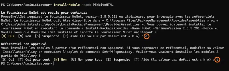 Pour installer le module PSWriteHTML, il suffit d'exécuter la commande suivante dans une console PowerShell :