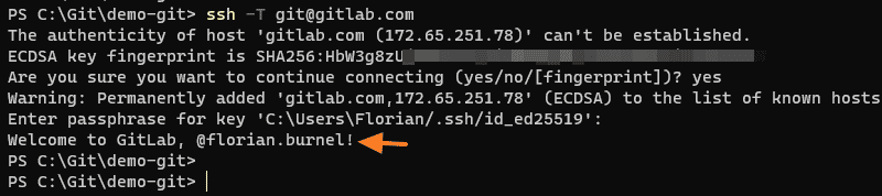 Retournez dans la console afin d'établir une connexion SSH à GitLab. Exécutez la commande suivante :