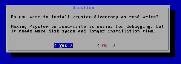 "Do you want to install /system directory ad read-write ?" Indiquez "Yes" afin d'être en mesure d'écrire sur le système et de pouvoir effectuer des changements, sinon vous allez vous retrouver en lecture seule.
