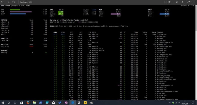 Voilà, vous pouvez désormais superviser simplement votre système Windows à l'aide de Glances. A vous d'aller plus loin dans la configuration, en attendant peut-être d'autres tutoriels sur le sujet sur IT-Connect.