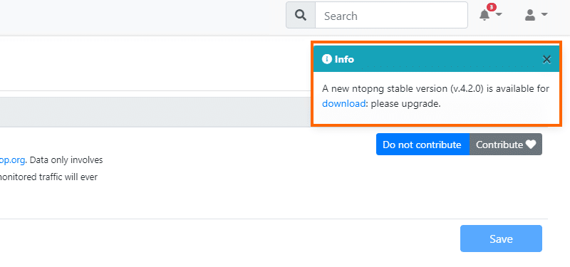 Après avoir fait votre choix sur le fait de participer ou non à l'amélioration du produit (notification en haut à droite), une seconde notification s'affiche pour vous indiquer que la version v4.2.0 de NtopNG est disponible. Le problème, c'est qu'il n'est pas forcément aisé de faire la mise à niveau, car d'un point de vue du paquet du PfSense, le paquet est "à jour".