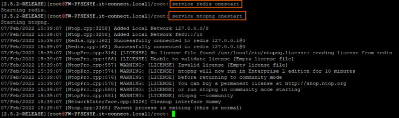 Dès maintenant, nous pouvons démarrer Redis et NtopNG avec les deux commandes suivantes :