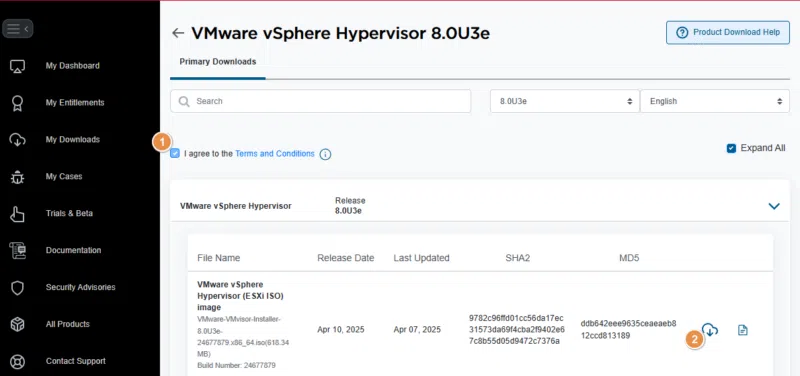 Pour compléter ce tutoriel, vous aurez besoin d’un compte sur le portail Broadcom afin de télécharger une version d’évaluation de ESXi 8.0. Lorsque votre compte sera créé, vous pourrez télécharger VMware vSphere Hypervisor 8.0U3e via ce lien. La création d'un compte est gratuite.