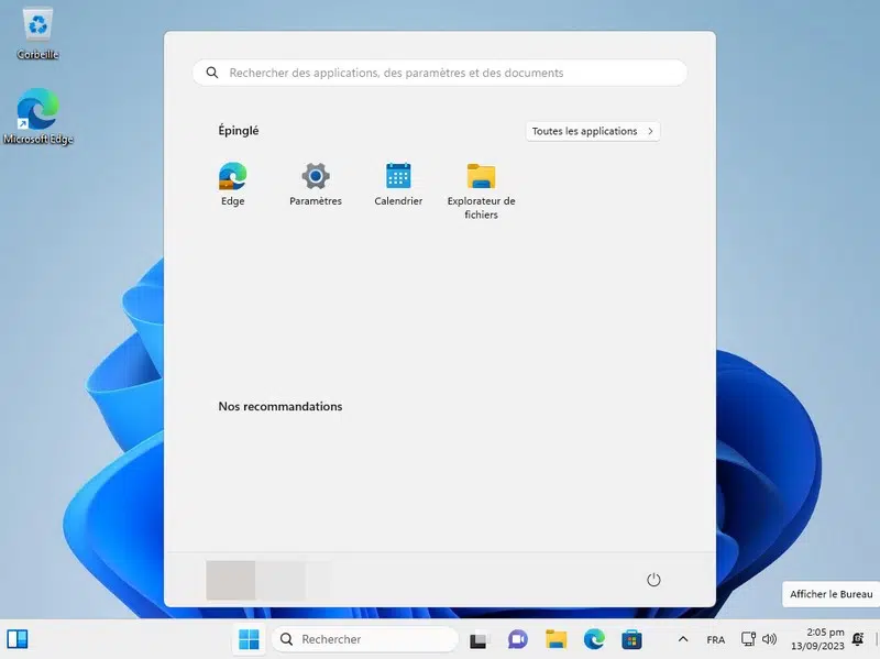 Après quelques minutes, l'installation est terminée et vous êtes sur le Bureau de Windows 11 ! Vous avez entre les mains une version de Windows 11 "épurée", car sans tous les bloatwares même s'il reste les applications de Microsoft (dont vous pourriez avoir besoin, car elles font partie du panel de fonctionnalités du système).