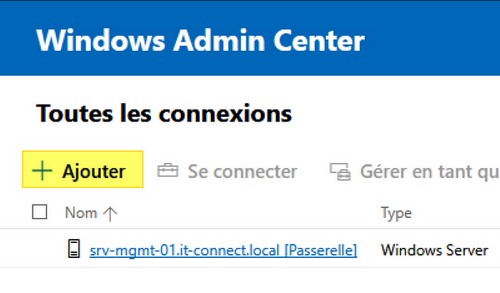 Maintenant, nous allons voir comment ajouter un serveur à Windows Admin Center. Sur la page d'accueil, cliquez sur le bouton "Ajouter".