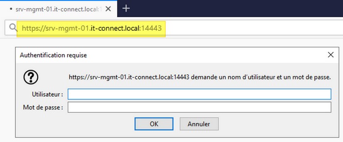 Le navigateur va s'ouvrir et vous devrez vous authentifier. Avec un compte Administrateur du domaine ce sera parfait pour avoir les droits nécessaires à l'ajout de serveurs, etc.