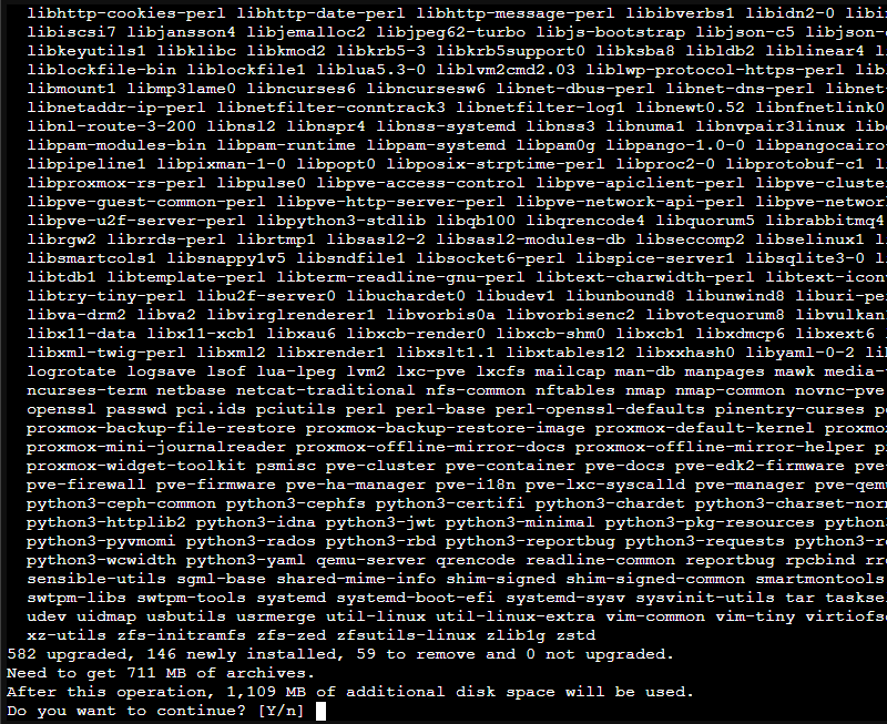 Si besoin, voici les trois commandes à exécuter pour mettre à jour Proxmox VE vers la version la plus récente (dans la branche actuelle, soit Proxmox VE 8).