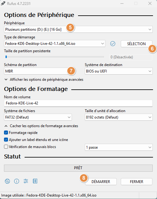 - Télécharger une image ISO de Fedora KDE