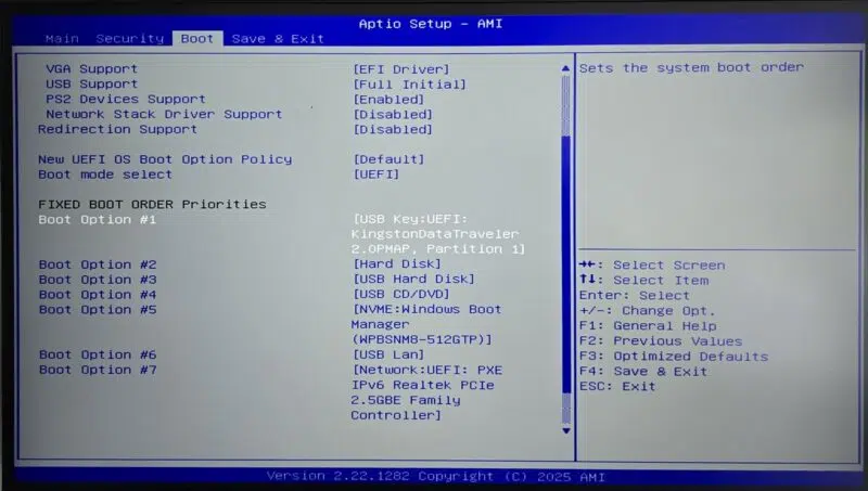 - Si vous ne parvenez pas à démarrer sur la clé USB malgré une bonne configuration du "Boot Order", pensez à désactiver le Secure Boot temporairement.