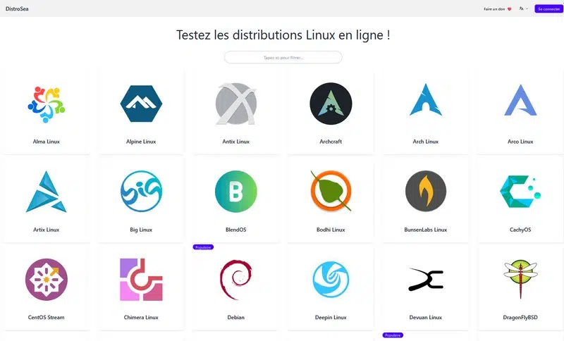 - L'utilisation de DistroSea, un site web très utile pour essayer les distributions Linux directement dans votre navigateur. Surement le moyen le plus simple de se faire une première idée. C'est gratuit, même s'il faut parfois patienter quelques minutes, car il y a un système de liste d'attente.