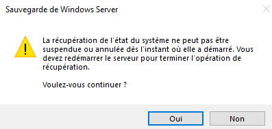 Nous allons maintenant aborder la restauration de l’état du système. Ce mode doit impérativement être exécuté depuis le contrôleur de domaine hébergeant la base NTDS ou l’élément à restaurer. Il est donc essentiel que ce serveur soit fonctionnel et non corrompu avant d’initier la procédure.