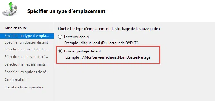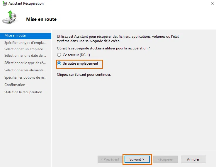 Choisissez un autre emplacement si votre sauvegarde se trouve sur le réseau, puis cliquez sur « Suivant ».