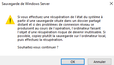 Lisez le message d'avertissement puis validez, il s'agit d'un avertissement des risques de restauration à partir du réseau.