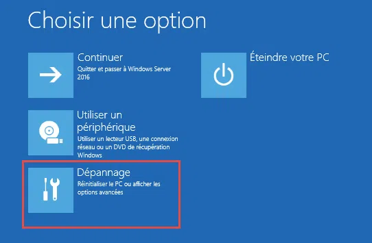Pour effectuer une restauration complète de votre Active Directory, démarrez le serveur à partir du support d'installation de Windows Server. Il est fortement recommandé d'utiliser la même version que celle du système d'exploitation installé, ou une version ultérieure.
