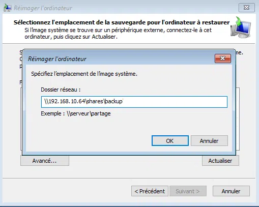 Entrez ensuite le chemin réseau vers votre image. Par exemple :