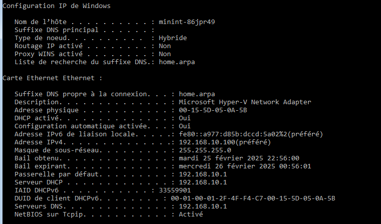 Vérifiez ensuite que vous avez bien obtenu une adresse IP :
