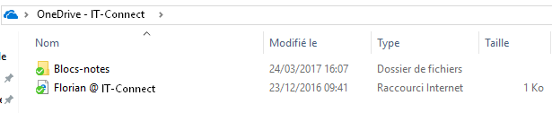 Si je me rends au sein du SharePoint synchronisé sur mon poste via OneDrive, on remarque en effet qu'il est stocké ici. Enfin presque, car il s'agit d'un raccourci internet (il y a un peu tricherie de la part de OneNote...) qui renvoie vers le SharePoint de l'entreprise. Ainsi, en cliquant sur le lien on pourra éditer le bloc-note directement sur OneNote Online.