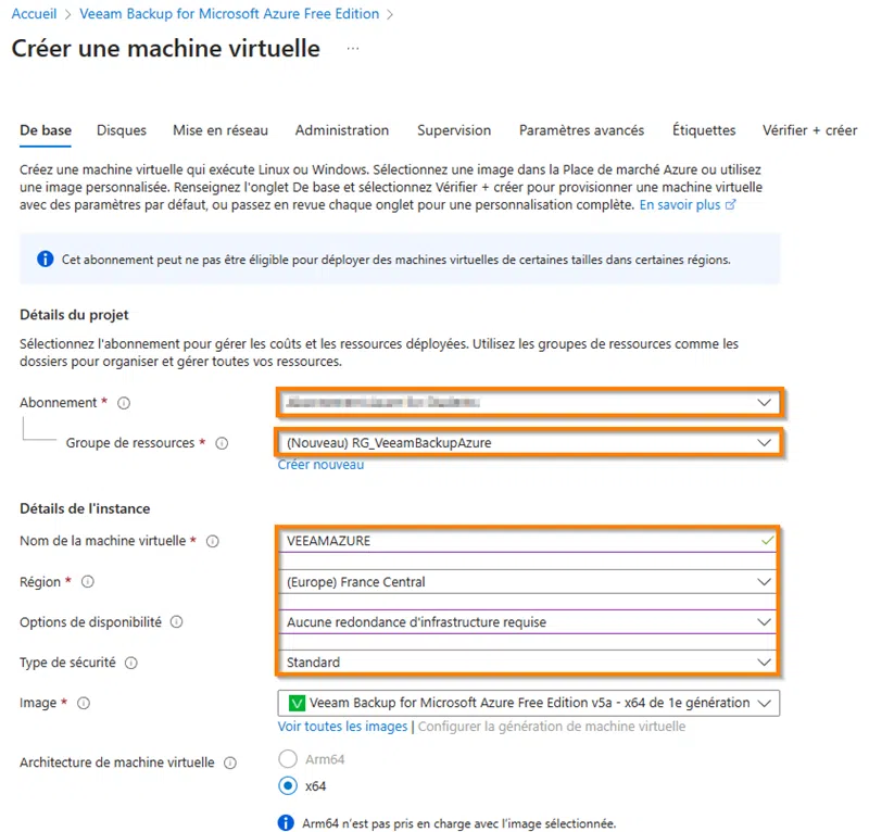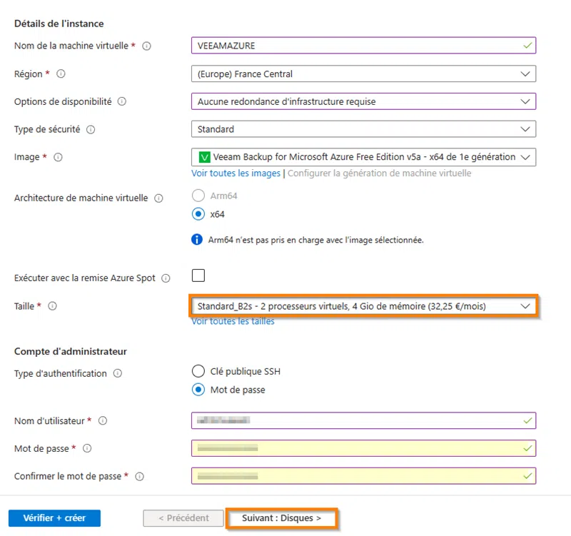 | Appliance Veeam Backup for Azure | Standard B2s (2 vCPU + 4 Go RAM)Standard B2ms (2 vCPU + 8 Go RAM) |