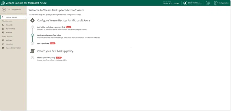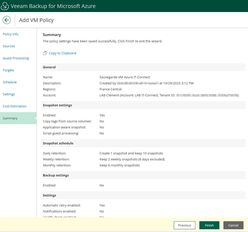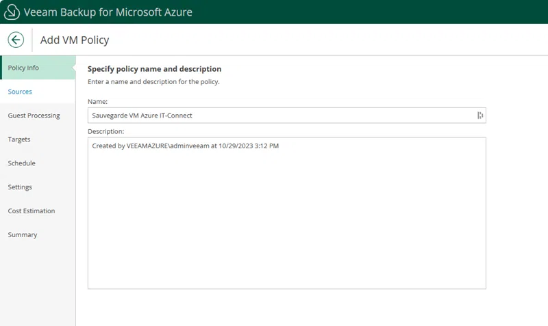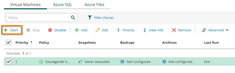 À ce stade, Veeam Backup for Azure est prêt pour la sauvegarde. Il nous reste à créer notre première stratégie de sauvegarde de ressources Azure.