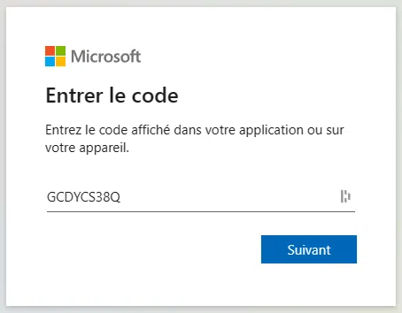 Ensuite, il est nécessaire de se connecter à votre tenant Azure pour ajouter le compte de service et avoir accès à vos ressources pouvant être sauvegardées. Pour cela, connectez-vous à https://microsoft.com/devicelogin et saisissez le code indiqué dans l’assistant Veeam.