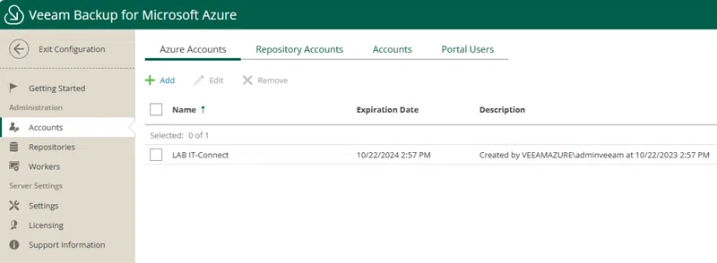 Ici, nous allons configurer la connexion à Azure pour Veeam Backup for Azure. Cette opération nous permet d’ajouter une application Azure permettant d’accéder aux ressources cloud pour orchestrer les tâches de sauvegarde.
