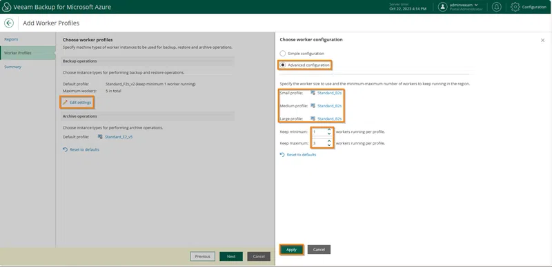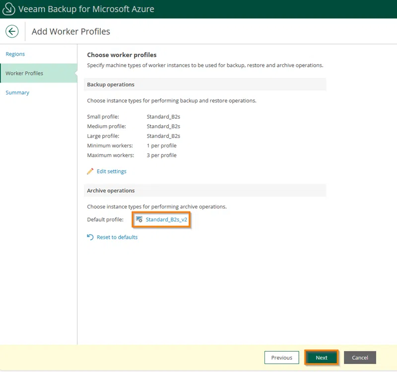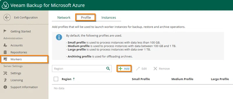 Il existe 4 types de « Workers » dans Veeam Backup for Azure :