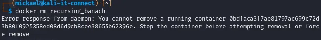 Si vous ne stoppez pas le conteneur avant de le supprimer, vous risquez de vous retrouver avec une erreur "Error response from daemon: You cannot remove a running container" :
