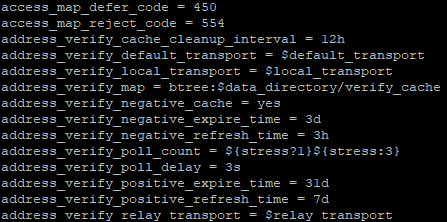 En effet, cela permet de lister tous les paramètres de configuration du service postfix. Le résultat d’une telle commande est le suivant :