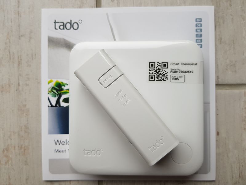 Ce kit de démarrage contient une passerelle Tado°, un thermostat intelligent et ses accessoires, ce qui nous donne :