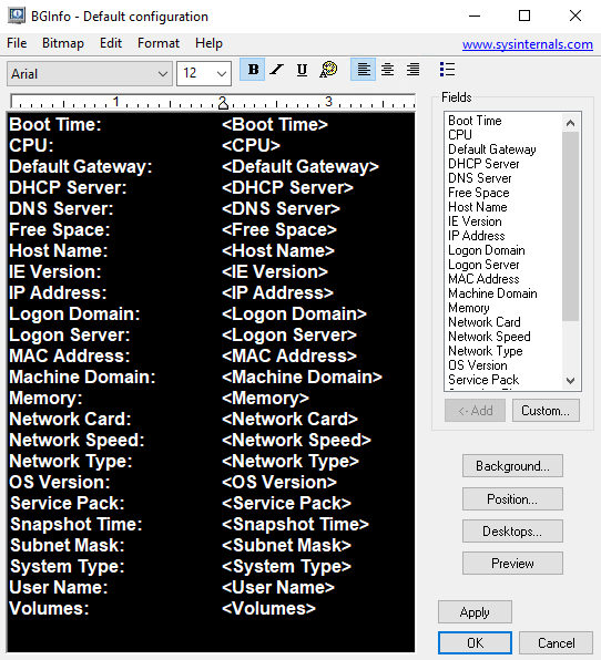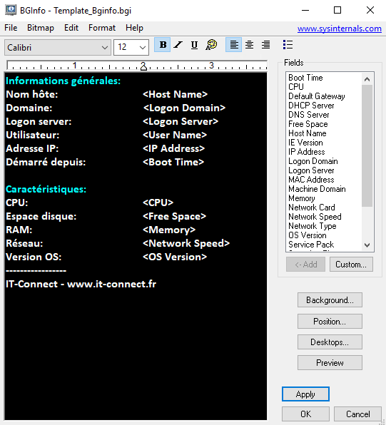 Configuration Bginfo : afficher des infos systèmes sur le bureau de Windows
