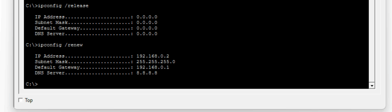 sur linux : dhclient -r pour enlever le renouvellement, dhclient pour le renouvellement de bail et enfin ifconfig pour vérifier toutes les adresses attribuées sur linux.