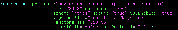 Maintenant que le Keystore est généré, il faut indiquer à Tomcat quel connecteur (port) utiliser pour communiquer via SSL. Par défaut, il s'agit du port 8443 mais il n'est pas activé. Nous allons donc aller dans notre fichier "conf/server.xml" pour modifier la configuration de notre Tomcat.