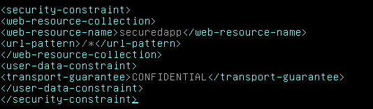 Nous voulons maintenant forcer la connexion en HTTPS et ne plus avoir la possibilité de nous connecter en HTTP simple. Il nous faut pour cela modifier le fichier "conf/web.xml" pour y ajouter ces lignes à la fin du fichier (juste avant </webapp>) :