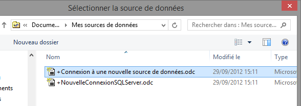 Cliquez sur "Connexion à une nouvelle source de données" pour créer un nouveau fichier de connexion (.odc).