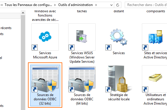 Dans la liste, ouvrez "Sources de données ODBC (32 bits)" ou "Sources de données ODBC (64 bits)" selon la version du driver installé.