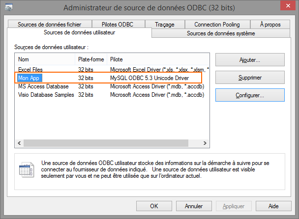 VI. Création de la connexion ODBC MySQL