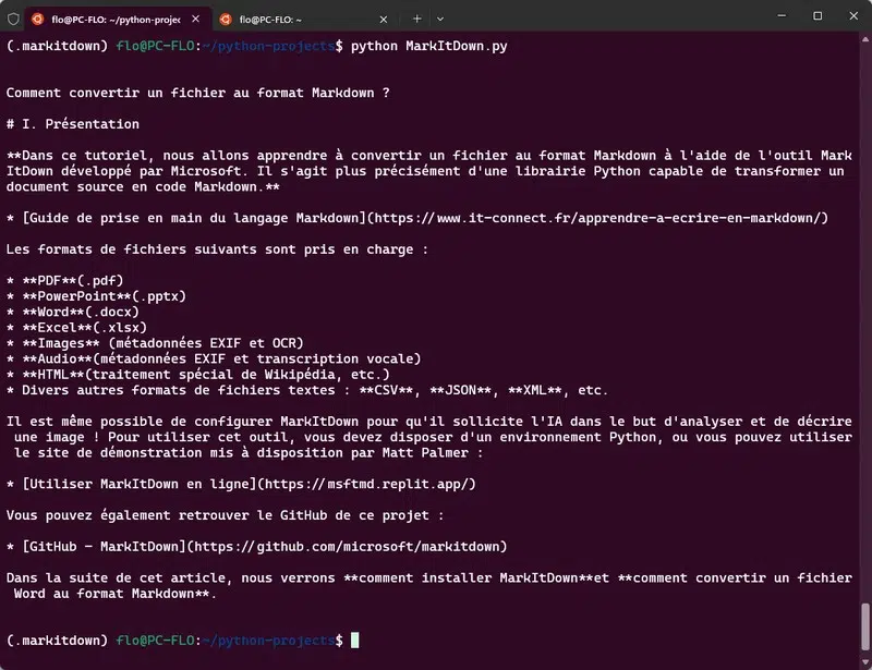 Dans la suite de cet article, nous verrons comment installer MarkItDown et comment convertir un fichier Word au format Markdown.