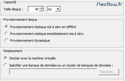 Cela signifie que si vous définissez un disque dur d'une taille de 40 Go, les 40 Go seront directement alloués sur le disque dur et que VMWare préparera une petite partie du disque prête à être écrite lors de la création du disque dur virtuel, le reste est différé c'est à dire qu'il sera préparé au fur et à mesure que la machine virtuelle en a besoin.