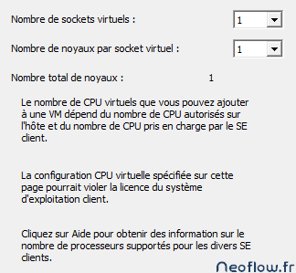 - Choix du nombre de processeurs et le nombre de cœurs qu'ils contiennent :