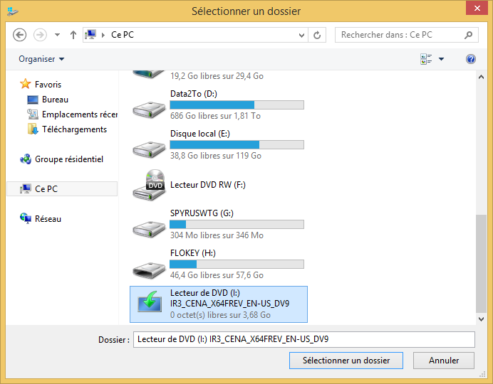 Munissez-vous de votre ISO « Windows 8.1 Entreprise » et double-cliquez dessus pour le monter dans Windows au sein d’un lecteur DVD virtuel, comme ceci :