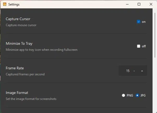 Si vous recherchez une application simple et légère pour enregistrer des GIF animés sur votre PC Windows, cette application devrait vous plaire. Elle permet aussi de prendre des captures d'écran (PNG ou JPEG) et d'enregistrer l'écran (MP4), mais ce sont des fonctions disponibles avec l'Outil capture de Windows. D'ailleurs, actuellement, il ne permet pas de créer des GIF mais il n'est pas improbable que Microsoft lui ajoute cette fonctionnalité par la suite...