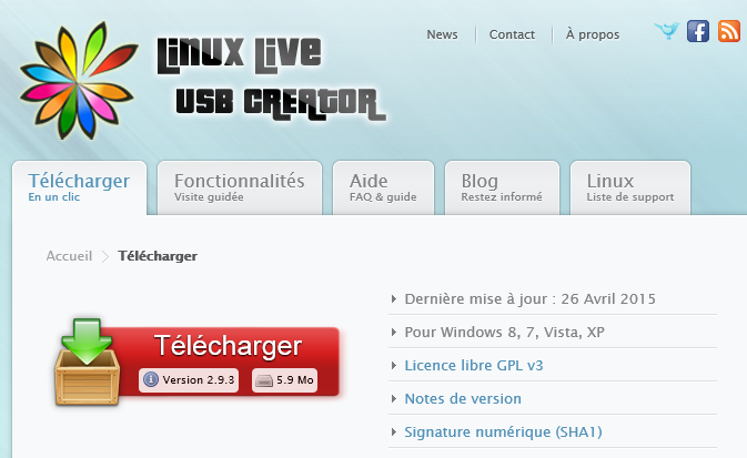 Sous Windows, nous allons utiliser LinuxLive USB Creator, un outil conçu spécifiquement pour effectuer cette tâche. Nous pouvons trouver l'installeur de LinuxLive USB Creator sur son site officiel : http://www.linuxliveusb.com/fr/
