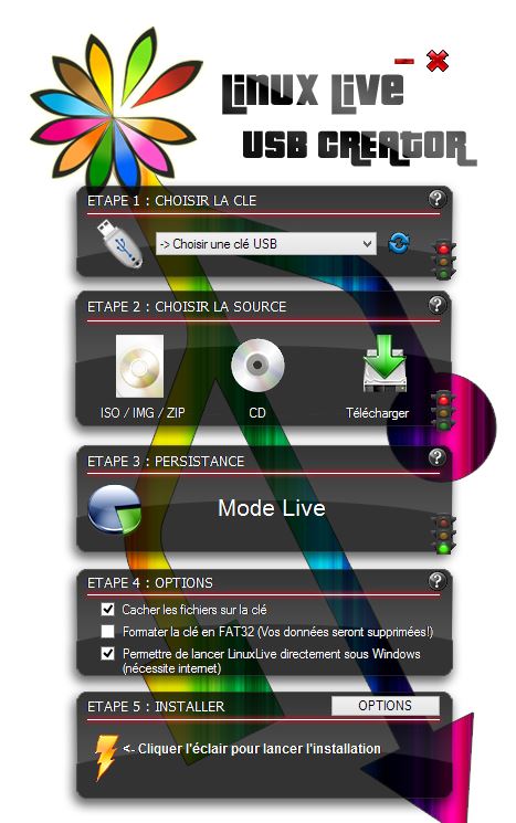 Pour terminer et afin de lancer la création de clé USB Linux Live, on pourra cliquer sur l'éclair en étape 5. En fonction de la taille de votre image, l'opération peut prendre entre 5 et 15 minutes.