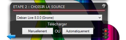 On va ensuite devoir sélectionner le système Linux souhaité. Nous avons le choix entre sélectionner une image ISO déjà en notre possession, ou alors Lili (Linux Live) nous propose d'en télécharger directement une, nous serons ainsi certain qu'il s'agisse bien d'une ISO contenant un système Live (car ce n'est pas toujours le cas, certaines ISO contiennent de quoi installer l'OS, mais pas de quoi le faire démarrer en mode live). Ici, je choisi d'en télécharger une directement depuis la liste proposée par Linux Live : Debian Live 8.0.0 avec le bureau Gnome :
