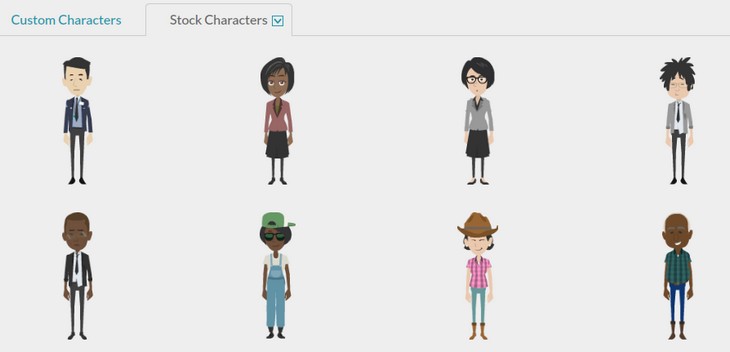 Si vous ressentez le besoin de créer vos propres personnages, cela est possible ! GoAnimate intègre un véritable créateur de personnages, où l’on personnalise complètement son individu : vêtements (de la tête au pied) et aspect physique (forme du visage, yeux, bouche, nez, oreilles, pilosité, cheveux, bijoux, lunettes…). À l’origine de la création, il faut également sélectionner la morphologie du personnage.